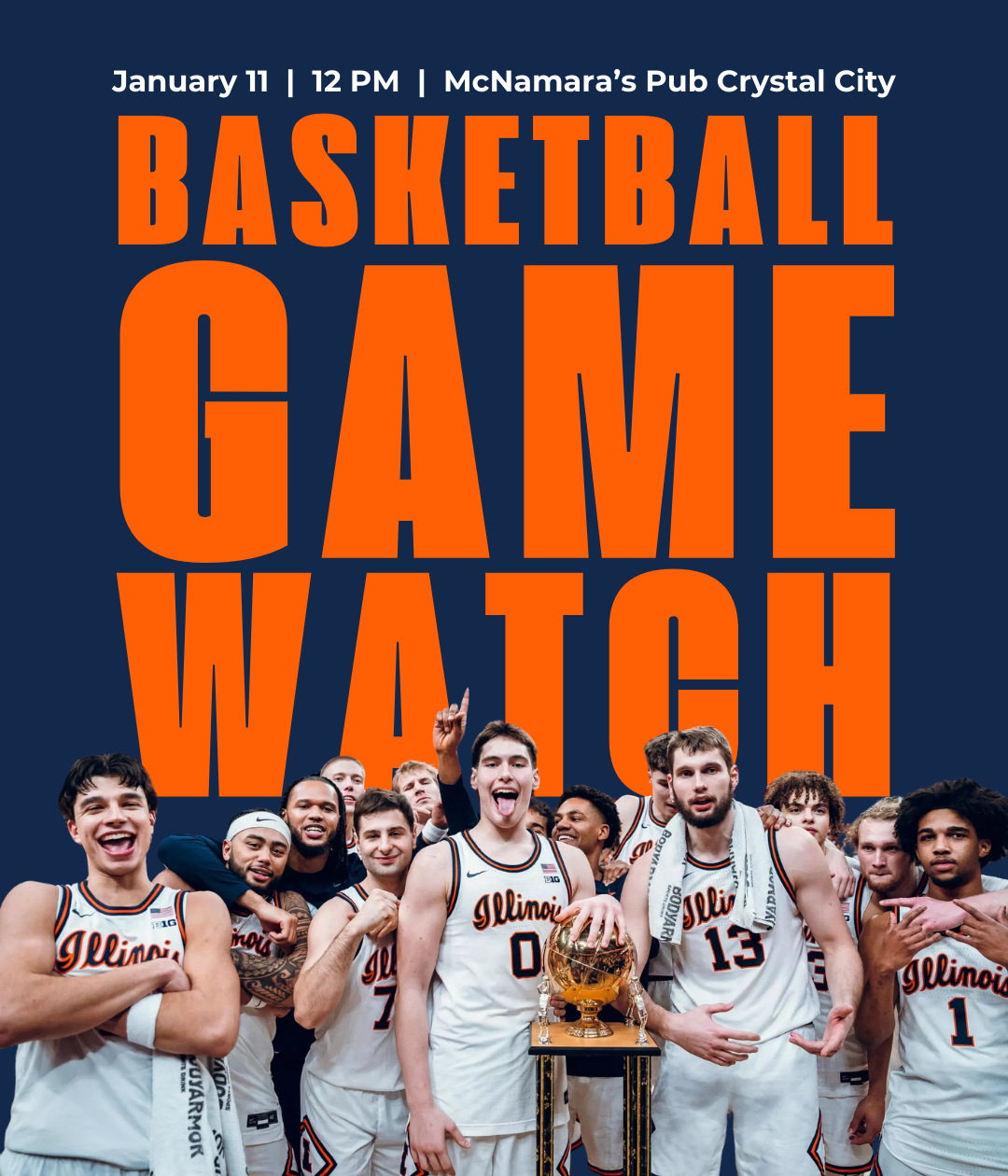 12:00PM - 2:00PM Sun 11 Jan 2026 Eastern timezoneJoin us as the Illini take on Iowa! We're back at McNamara's in Crystal City. -