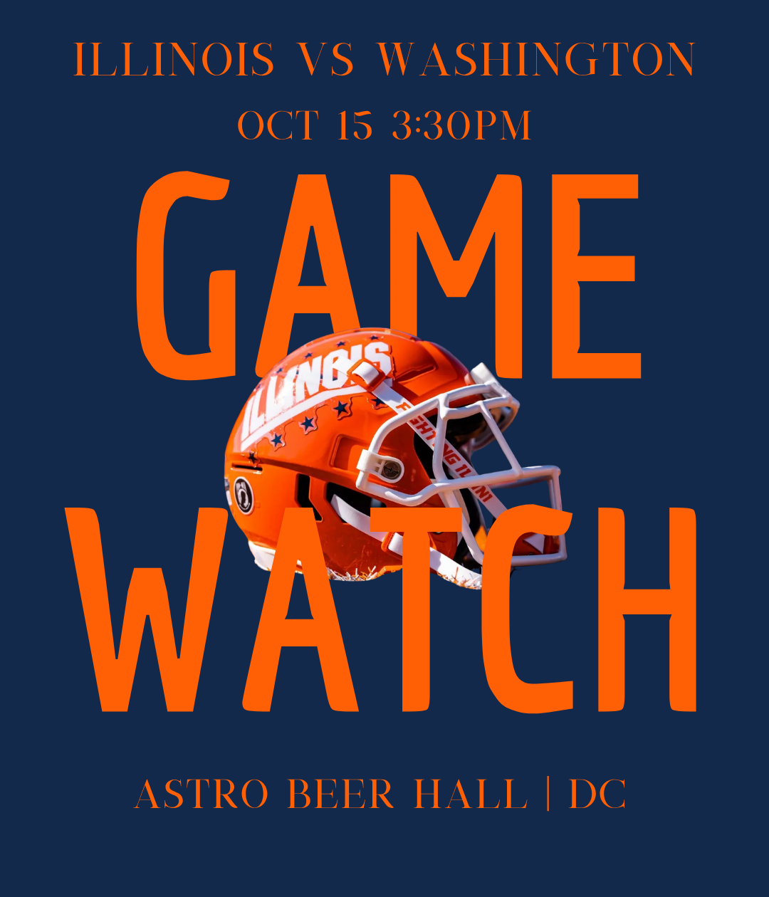 3:15PM - 7:00PM Sat 25 Oct 2025, Eastern timezonePlease join us at Astro DC as the Illini take on the Washington Huskies!